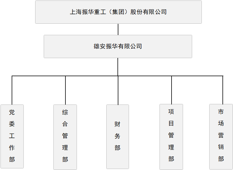 公司分设党委工作部、综合管理部、财务部、项目管理部和市场营销部共5个职能部门。