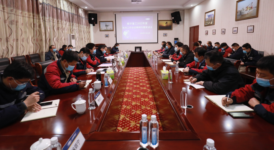 1月26日,启东海洋工程召开振华重工2022年度系列工作会议精神专题宣讲会。启东海工党委书记、公司董事长袁晶,党委副书记、公司总经理高峰,党委副书记、纪委书记陈相飞分别进行专题宣讲,启东海洋工程领导班子、各部门负责人、党工团及员工代表共39人参会。