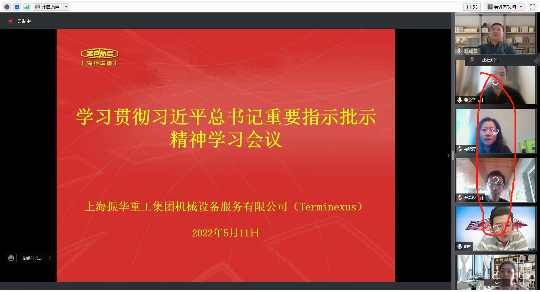 会上,胡彬同志首先领学了中交集团、振华重工党委关于学习贯彻习近平总书记重要指示批示精神会议精神,并就近期党中央、上海市委、中交集团驻沪统筹推进疫情防控与生产经营工作领导小组及公司的部署学习情况进行汇报;随后,Terminexus总经理陈凯就公司疫情防控与复工复产情况进行汇报,包括公司各项经济指标、员工居家办公、复工复产准备情况,重点介绍了公司物流运输、市场经营、股份制改革及困难员工帮扶等工作推进情况。Terminexus领导班子及业务骨干就分管业务板块分别做交流发言。