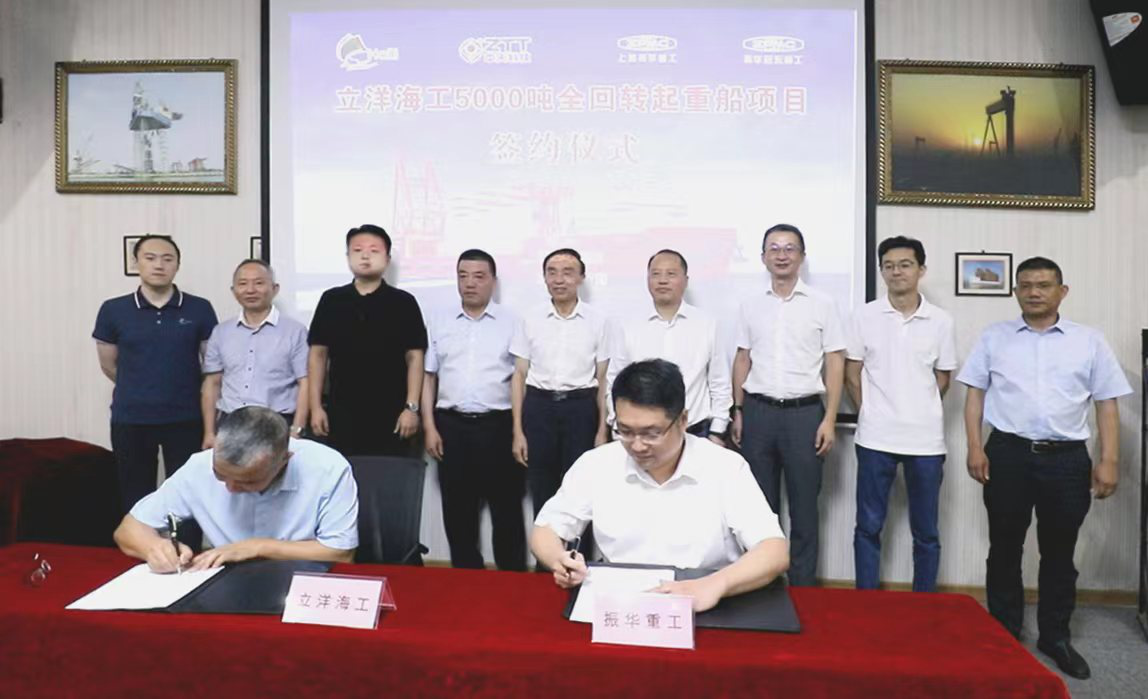 7月24日下午,振华重工与立洋海洋工程有限公司举行5000吨自航式全回转起重船项目签约仪式。该项目将在振华启东海工建造。