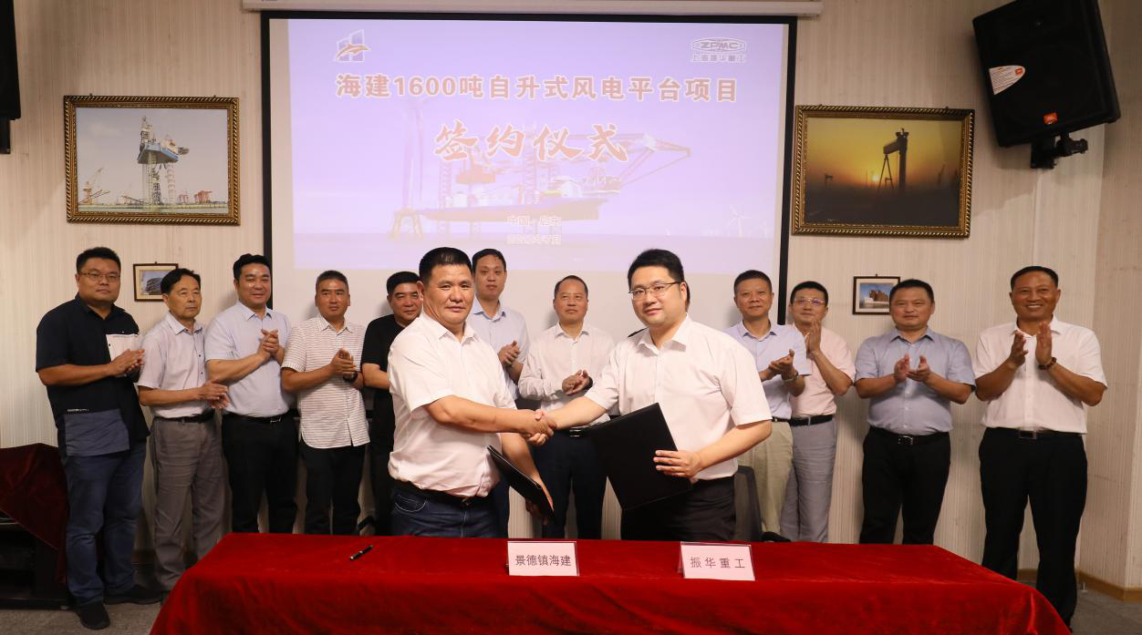 振华重工与海建新能源举行1600T自升自航式一体化海上风电安装平台项目签约仪式