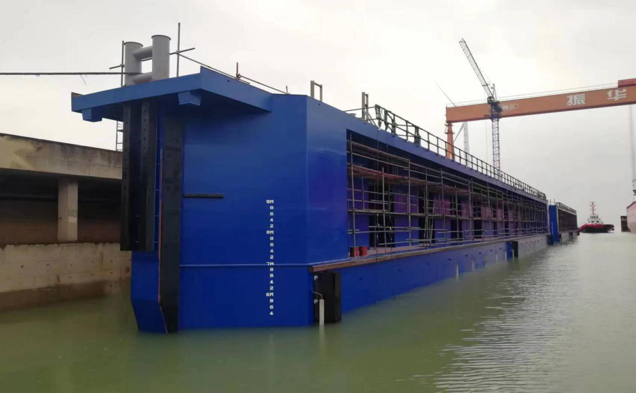 8月上旬,升船机吊装上船,准备发运;8月27日,坞门顺利下水。