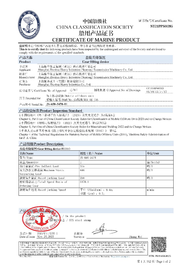 两获CCS国内第一认证 ZPMC自主研制第四代齿轮升降装置顺利交付