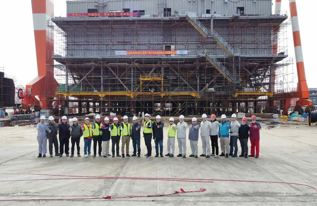 粤电青洲一海上升压站结构大合拢圆满完成