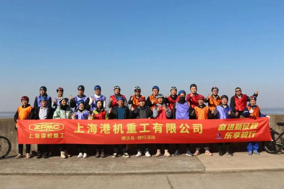 12月2日,上海港机重工“乐享骑行 奋进新征程”骑行活动在上海横沙岛举行。