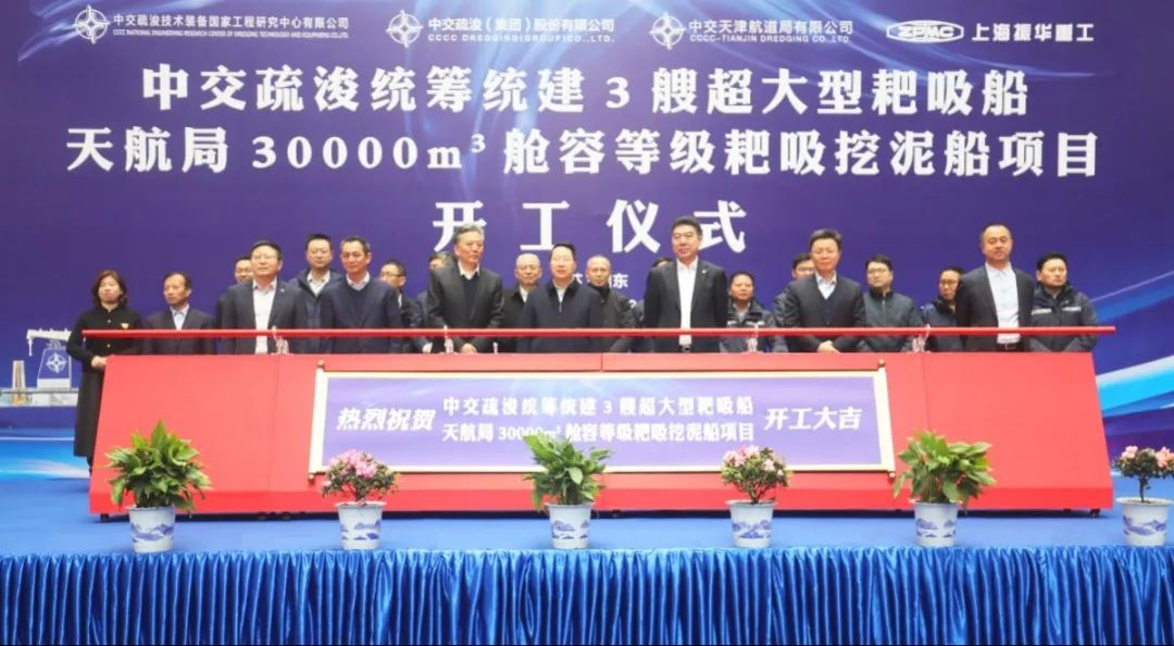 1月19日,振华重工为中交天航局建造的30000方舱容等级耙吸挖泥船项目在振华启东海工举行开工仪式。