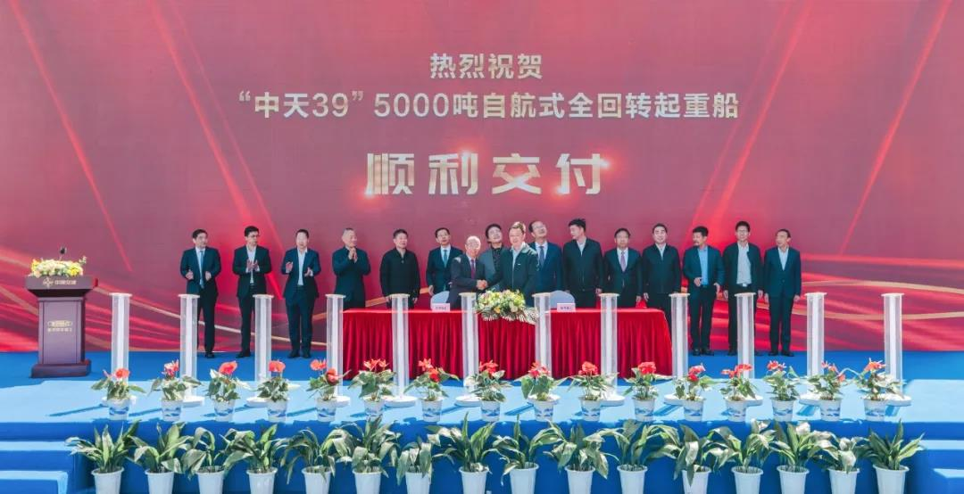 4月18日,上海振华重工为立洋海工建造的国内领先、国际一流的5000吨自航式全回转起重船“中天39”在振华启东海工举行命名暨交付仪式。