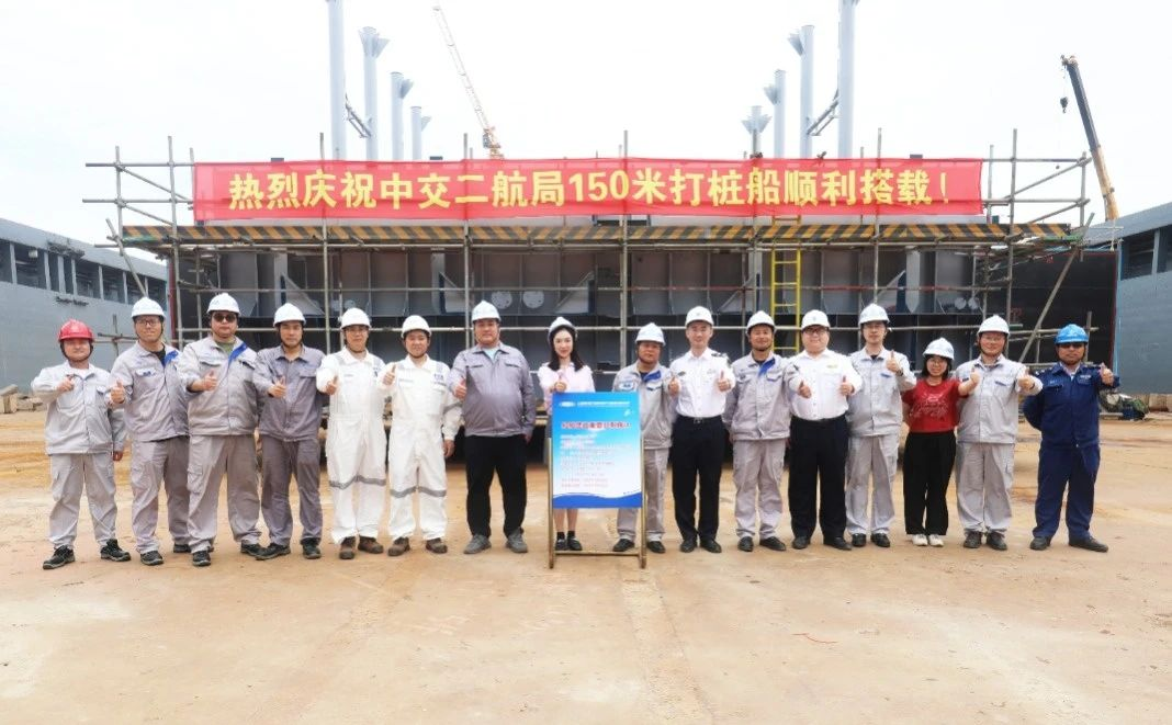 5月22日,上海振华重工为中交二航局建造的150米打桩船项目在振华启东海工举行搭载仪式。