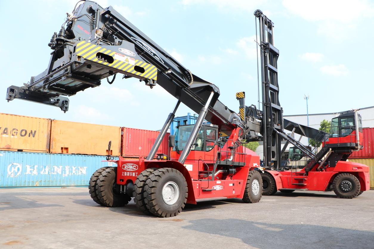 8月8日,由上海港机重工生产制造的中港喀麦隆克里比二期项目两台正面吊和三台堆高机顺利完工。