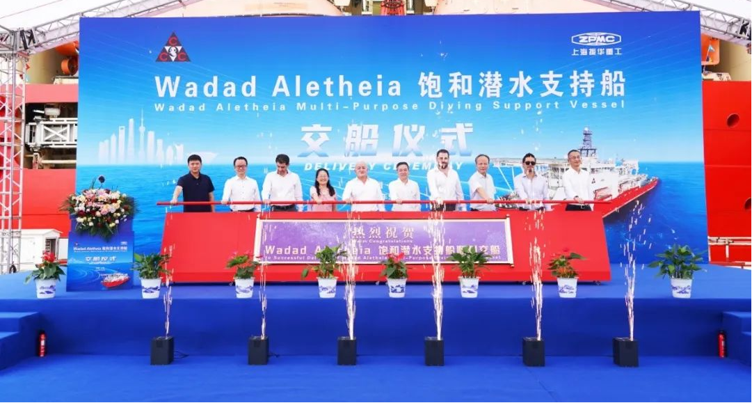 9月6日,由上海振华重工研制的“Wadad Aletheia” 多功能饱和潜水支持船交船仪式在振华启东海工长兴分部码头隆重举行。