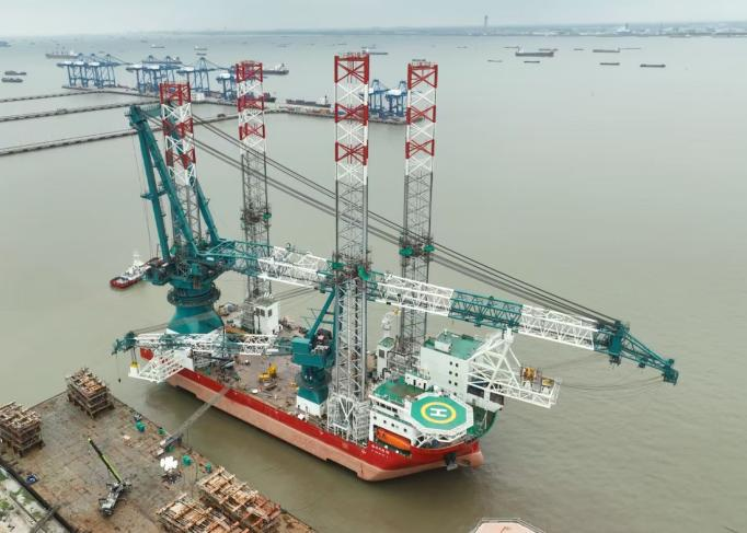 9月25日,韩通“海洋风电91”1600吨风电安装平台在振华重装码头顺利完成全程升降试验。