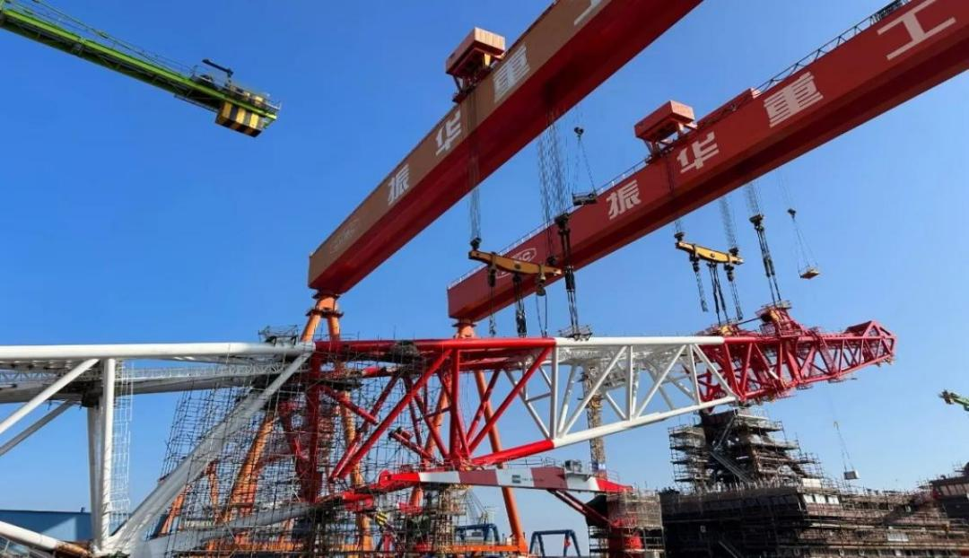 11月3日13时58分,振华重工为中交二航局建造的150米打桩船“二航长青”在80分钟内,成功完成两个600多吨的桩架节段的空中精准对接。