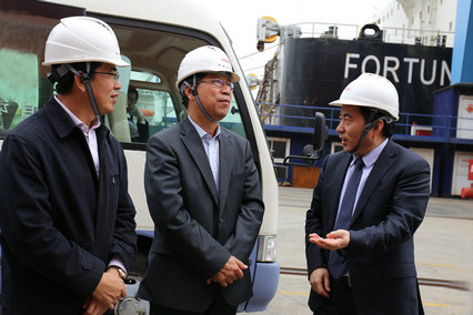 4月16日,陈玉胜一行视察了长兴分公司,听取了长兴分公司关于生产状况和重点项目的汇报,并参观了“振华21”轮及准备装载发运的澳大利亚岸桥、自动化码头系统示范线以及新型澳大利亚伸缩大梁岸桥。