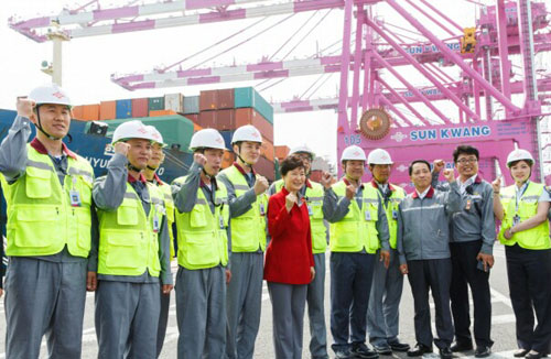 韩国总统朴槿惠高度评价振华重工“最粉嫩”岸桥