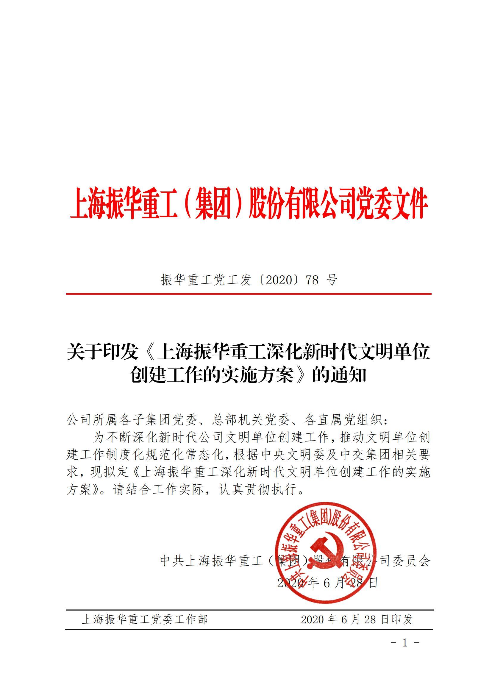 公司印发《上海振华重工深化新时代文明单位创建工作的实施方案》