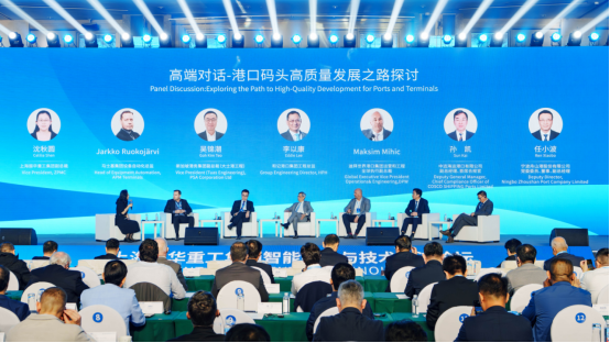 在高端对话环节,上海振华重工集团与来自马士基码头集团、新加坡港务集团、和记港口集团、迪拜世界港口集团、中远海运港口、宁波舟山港等国内外港口的专家和管理者,以“港口码头高质量发展之路探讨”为题,进行了热烈讨论,共话行业创新成果。